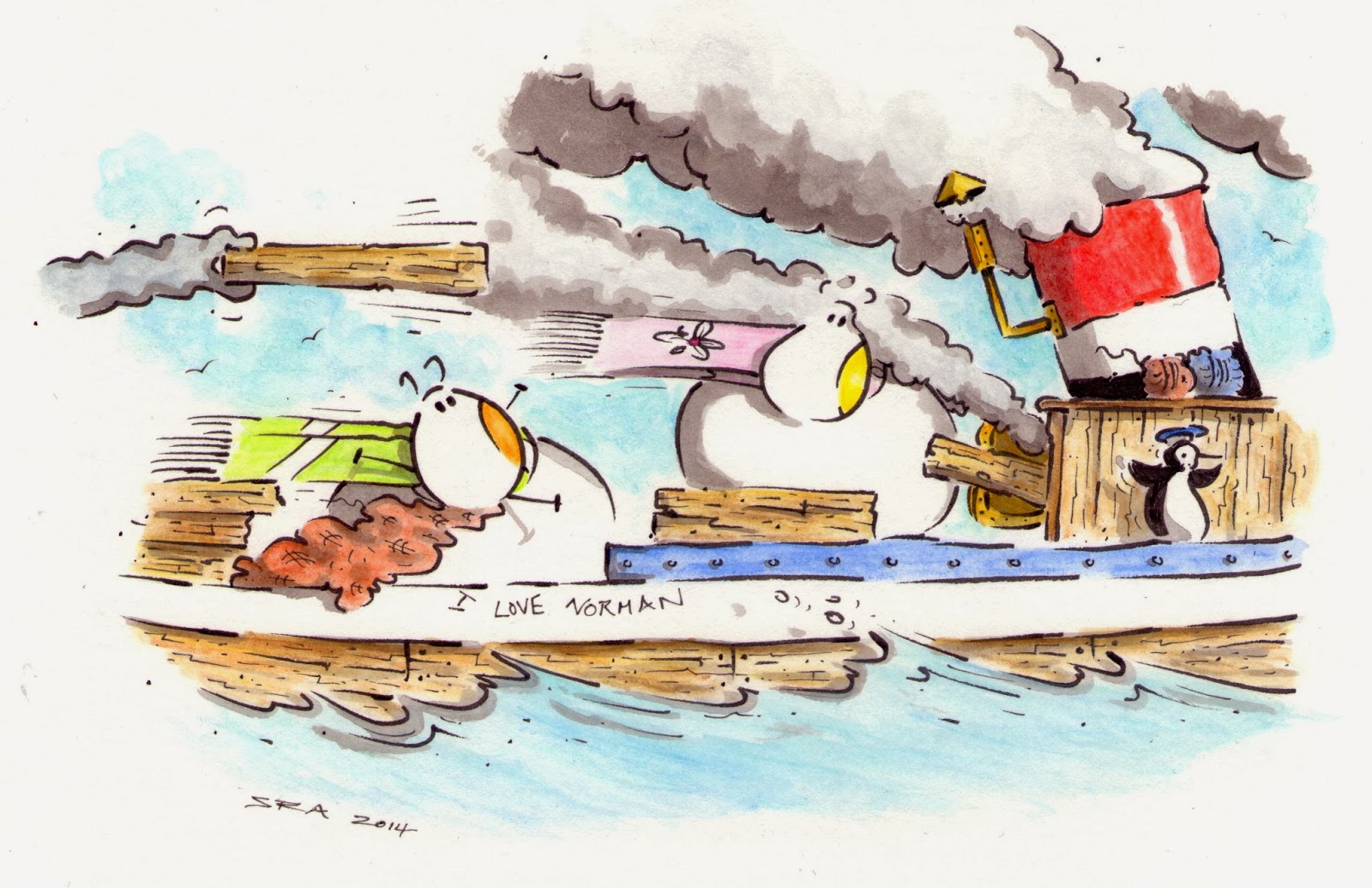 And at that moment Captain Geraldine appeared, waved her wings around, looked at the boiler, counted the remaining logs, jumped up and down and then scampered back toward the bow.